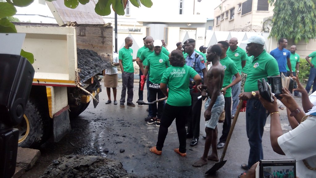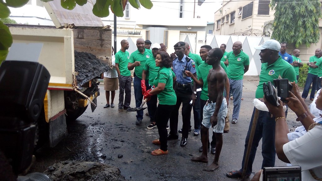 A sole administrator in Lagos,Princess Aderemi Adebowale was pictured today during the monthly environmental sanitation exercise parking sand,refuse this morning in Eko.