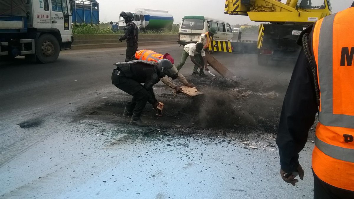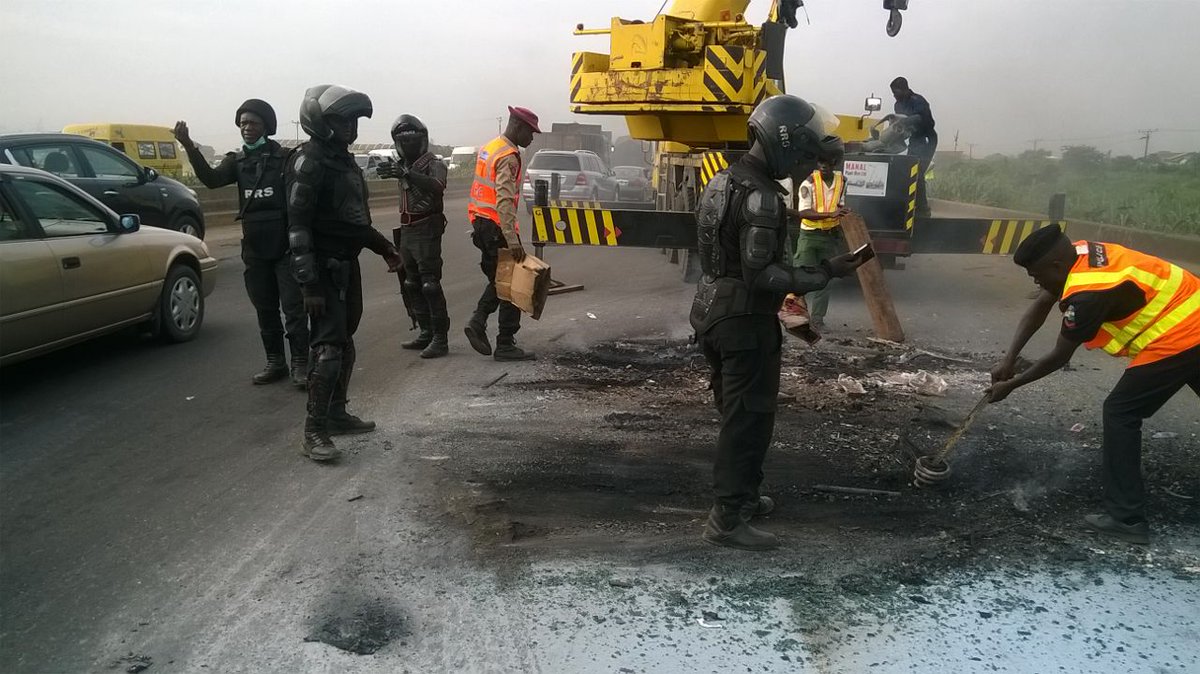 Rapid Response Squad , Federal Road Safety Officials and policemen were pictured this evening on the ever busy Lagos to Ibadan expressway as Redeemed camp is expected to welcome close to thousands of worshipers today for a vigil as the church convention continues.