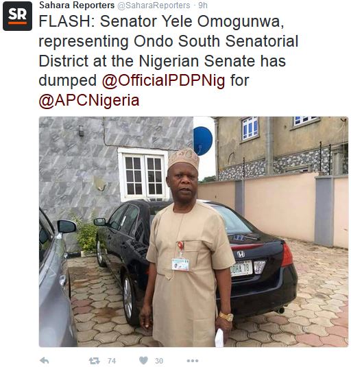 With the latest development, the PDP has no single Senator in Ondo as all the three representing the State at the upper chamber of the National Assembly are now members of APC.