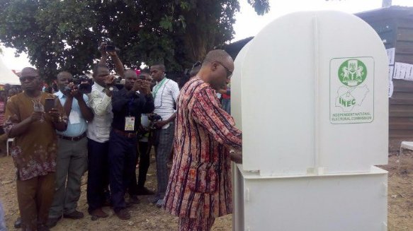 الصفحة الرئيسيةnews PHOTOS: Gov. Mimiko Casts His Vote byREPORT NAIJA •12:14:00 م 0 Ondo state Governor Segun Mimiko pictured this morning as he cast his vote in Ondo town. Tags: news Facebook Twitter