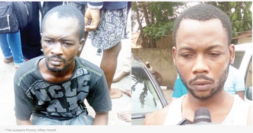 Lawrence Nwede and Ebele Odikwe, paraded after being caught by police officers