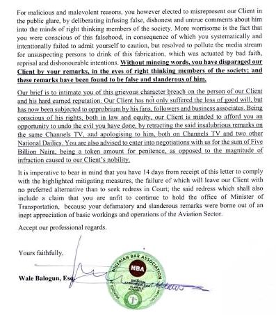 Here's a copy of Fani-Kayode's lawsuit against the minister;