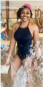 After her medical checkup, Edo native, Mercy Aigbe took time to unwind in the United Kingdom as she stormed the pool to refresh her flawless skin.