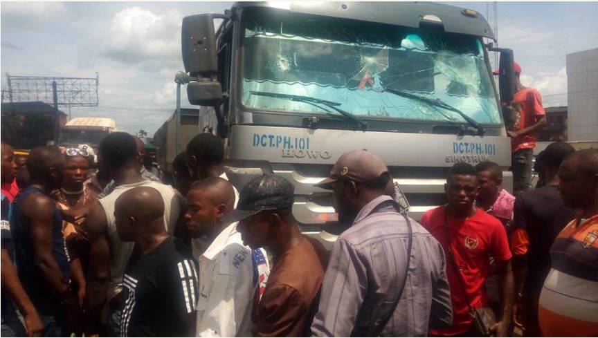 There was pandemonium in one of the popular areas of the South-eastern part of Nigeria following a bloody accident reportedly caused by a truck contracted to the Dangote Group of Companies.